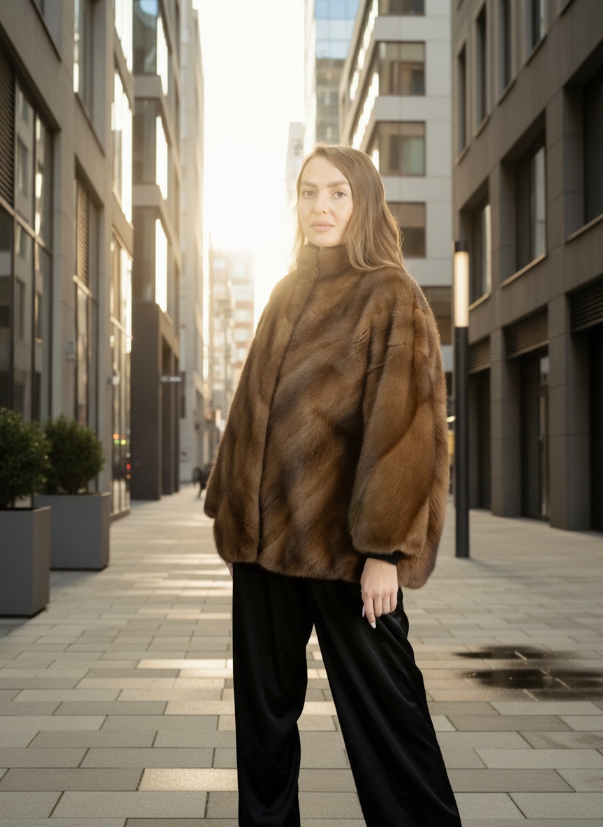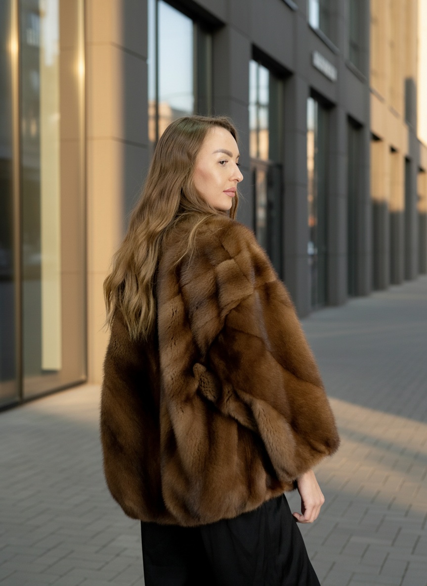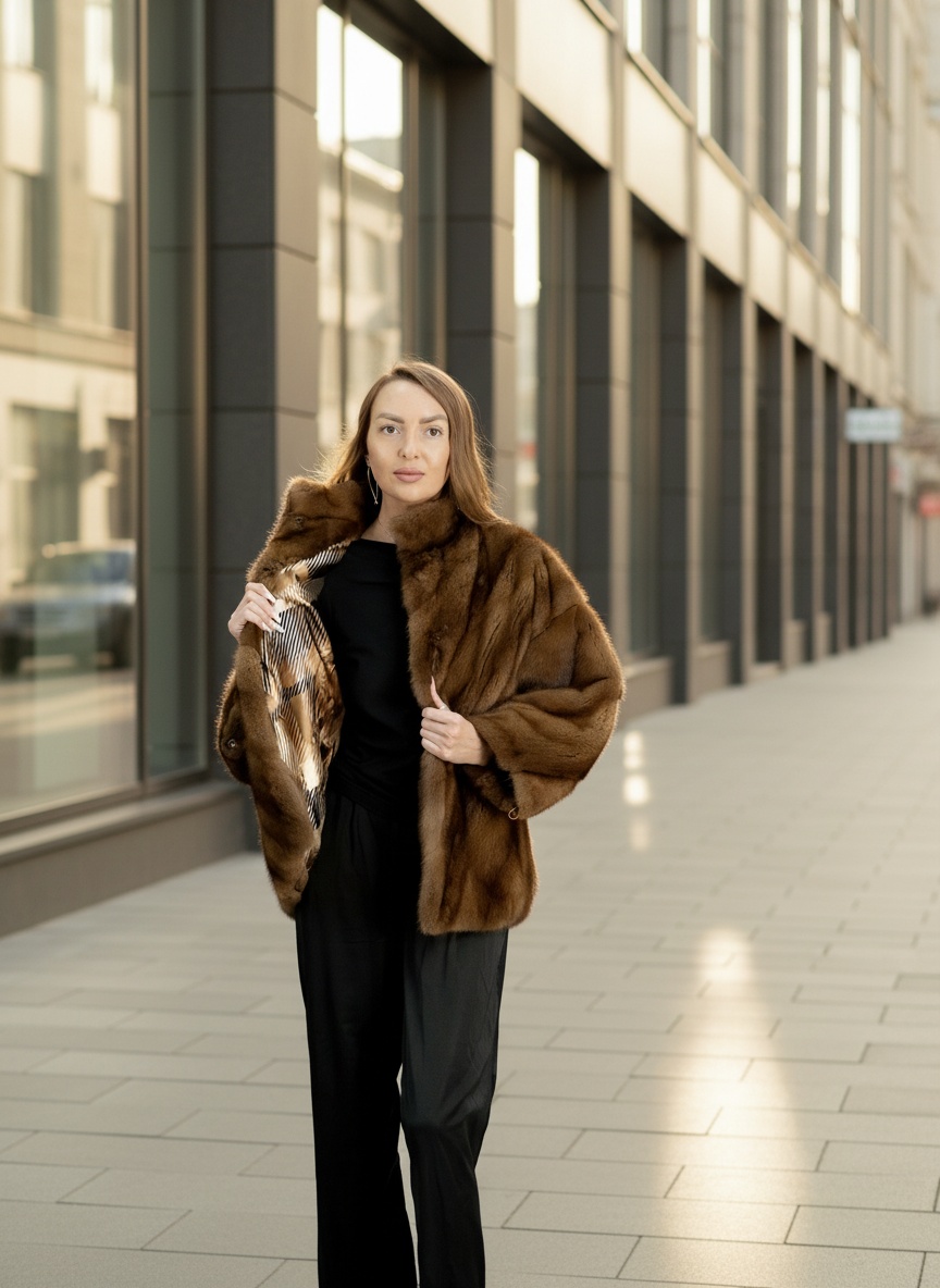 Классическая модель из норки. Прямой крой, минималистичный дизайн, глубокий тёмный мех.