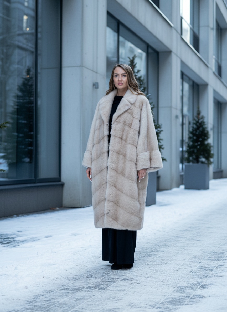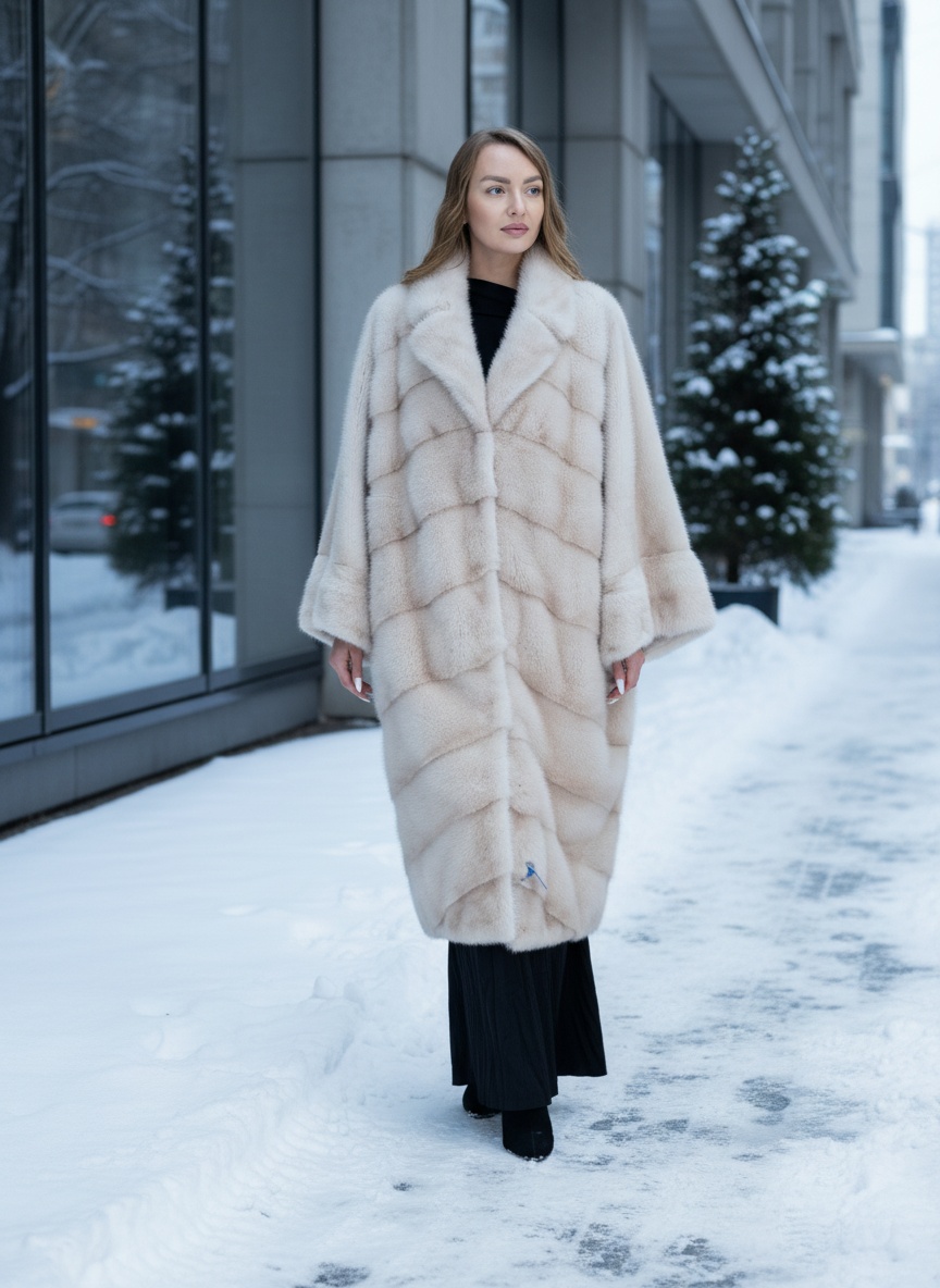 Шуба-одеяло из соболя пудрового оттенка. Свободный крой оверсайз, мягкий и уютный силуэт.