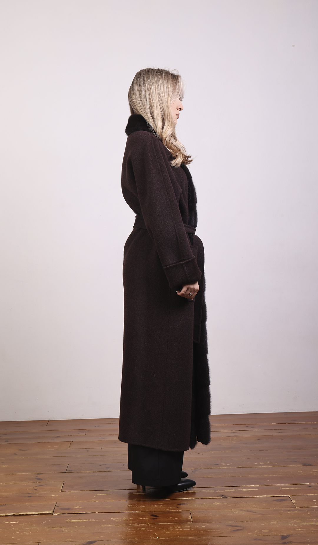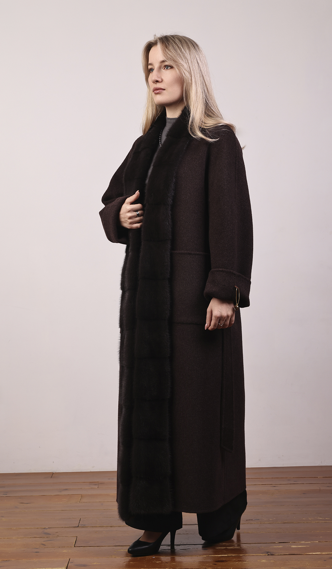 Классическое пальто из плотной шерсти. Приталенный крой, женственный силуэт.