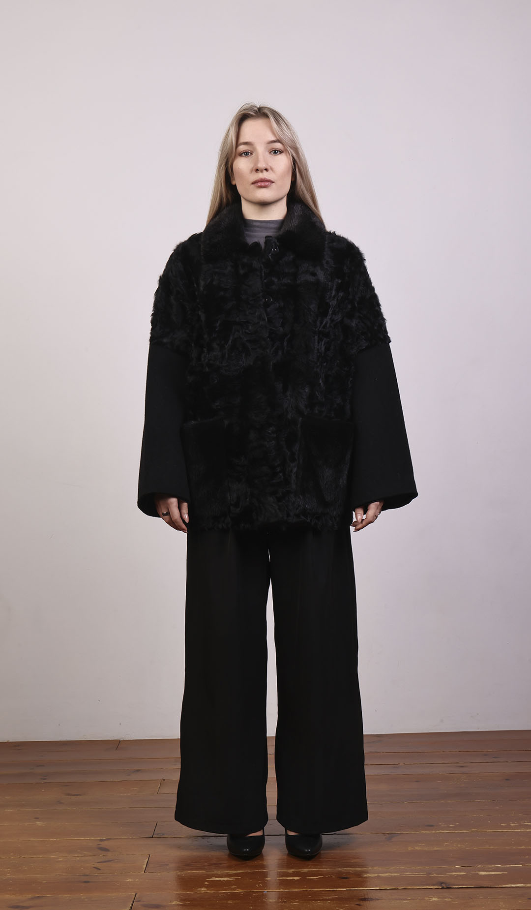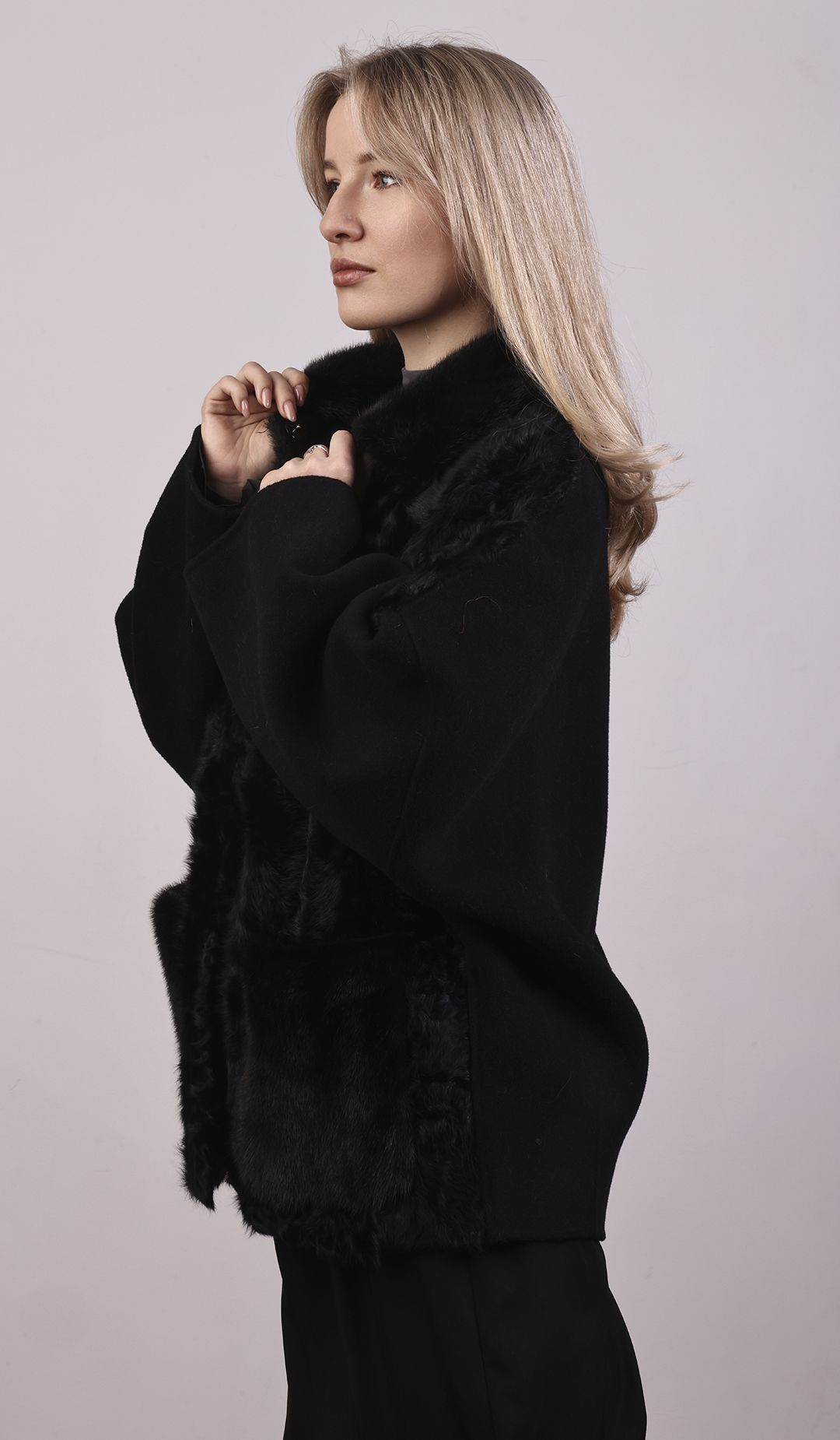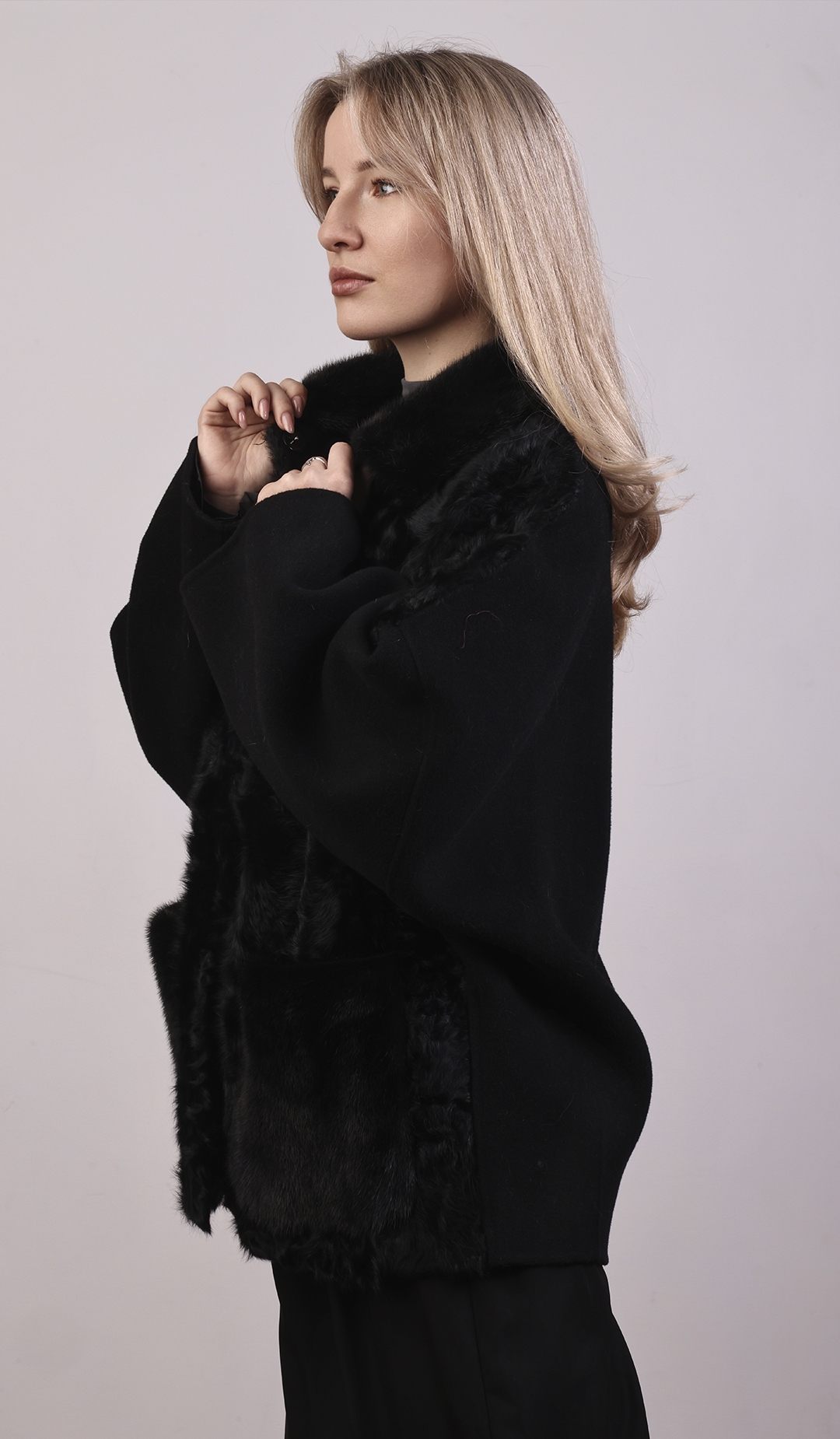 Элегантное пальто миди из мягкой шерсти. Женственные линии, лёгкий акцент на талии.