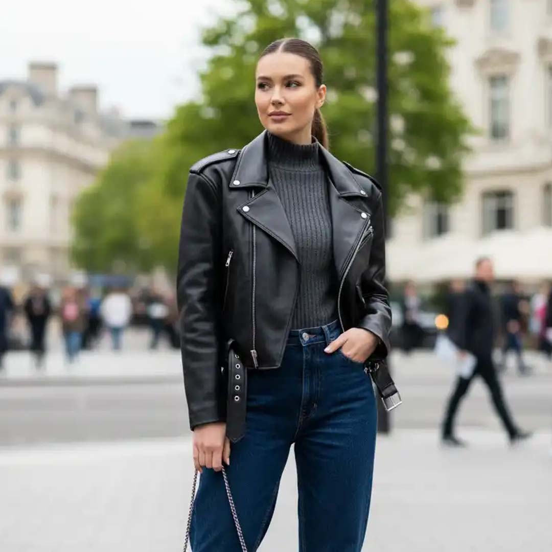 Минималистичная кожаная куртка для городского стиля.
